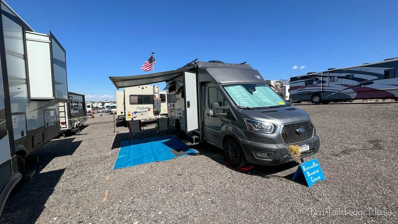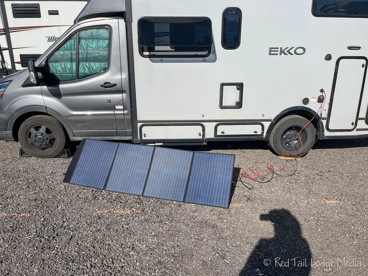 Monday, after most of the balloons landed from the Mass Ascension, we tested out our portable solar panel (paid link). When we first plugged it into the solar port on the EKKO, it was drawing current instead of supplying current. The polarity needed to be switched. The solar panel came with a little adapter to switch the polarity which plugged into the end of the cables. Once the adapter was added, the panel started supplying about 8 amps. Satisfied that everything was working properly, we packed it back up and put it away. Sunshine was in the forecast for most of the week, so we didn’t need the extra panel. Our batteries never dropped below 80% the whole week, even with using the Instant Pot and induction cook top. The solar panels on the roof were enough to keep up with our needs.