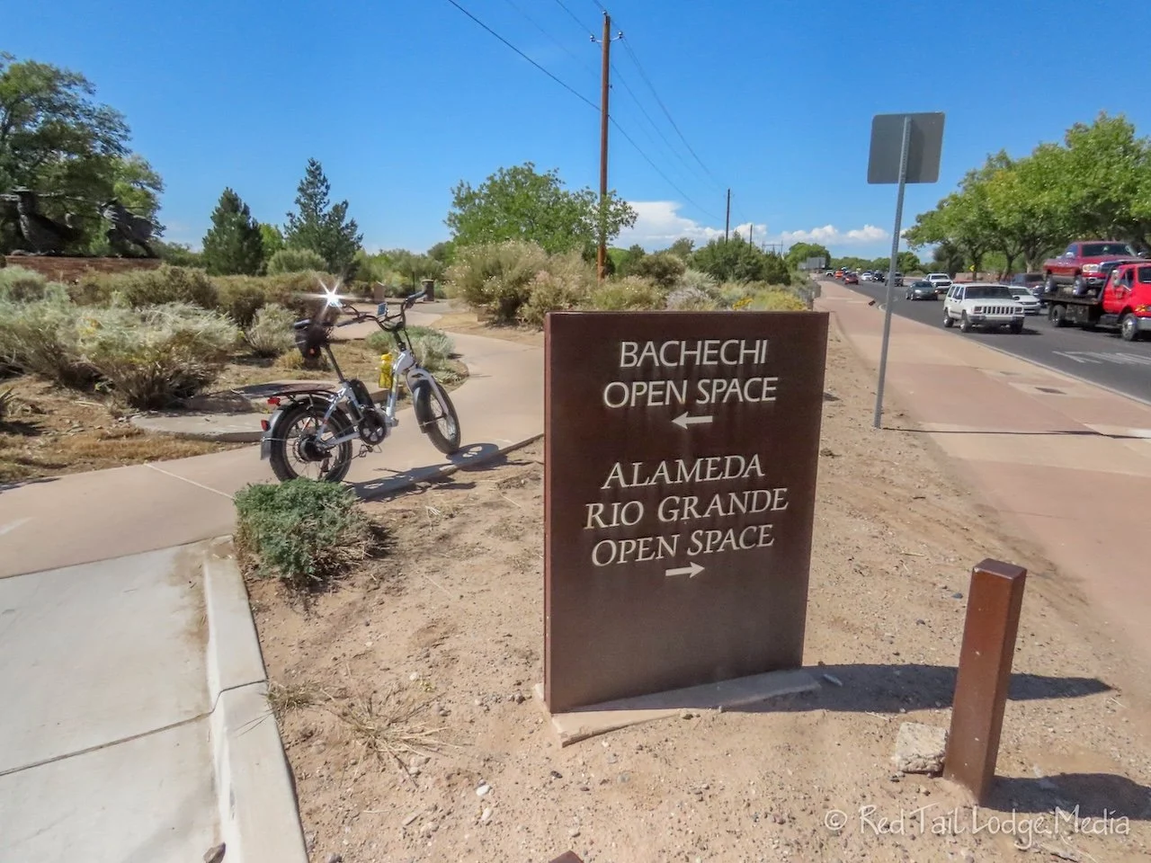 From 4th Street, we took the bike lane alongside Alameda the rest of the way to the Bachechi Open Space where we picked up the Bosque Trail. Riding the bike lane on Alameda was not the most pleasant ride we’ve ever done, but it got us there. The bike lane disappeared every time we approached an intersection, leaving us to fend for ourselves among the vehicles through the intersection.