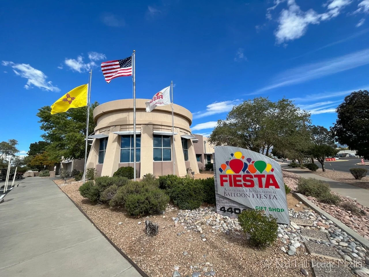 We probably should have stayed longer at the meet and greet, getting to know some of the other LJMJ fans, but we are both introverts and Keith is not much of a crowd mingler. Instead, we walked over to the Albuquerque Balloon Fiesta headquarters building to their gift shop. Ann wanted to buy a T-shirt, but the couple of Official Merchandise Tents in the park always had long lines to get in. The quantity of supplies are more limited at the gift shop, but there are no lines and no waiting, a much more pleasant experience. Ann was able to find a T-shirt she liked in her size along with a hoodie. Keith picked up a drink cozy.
