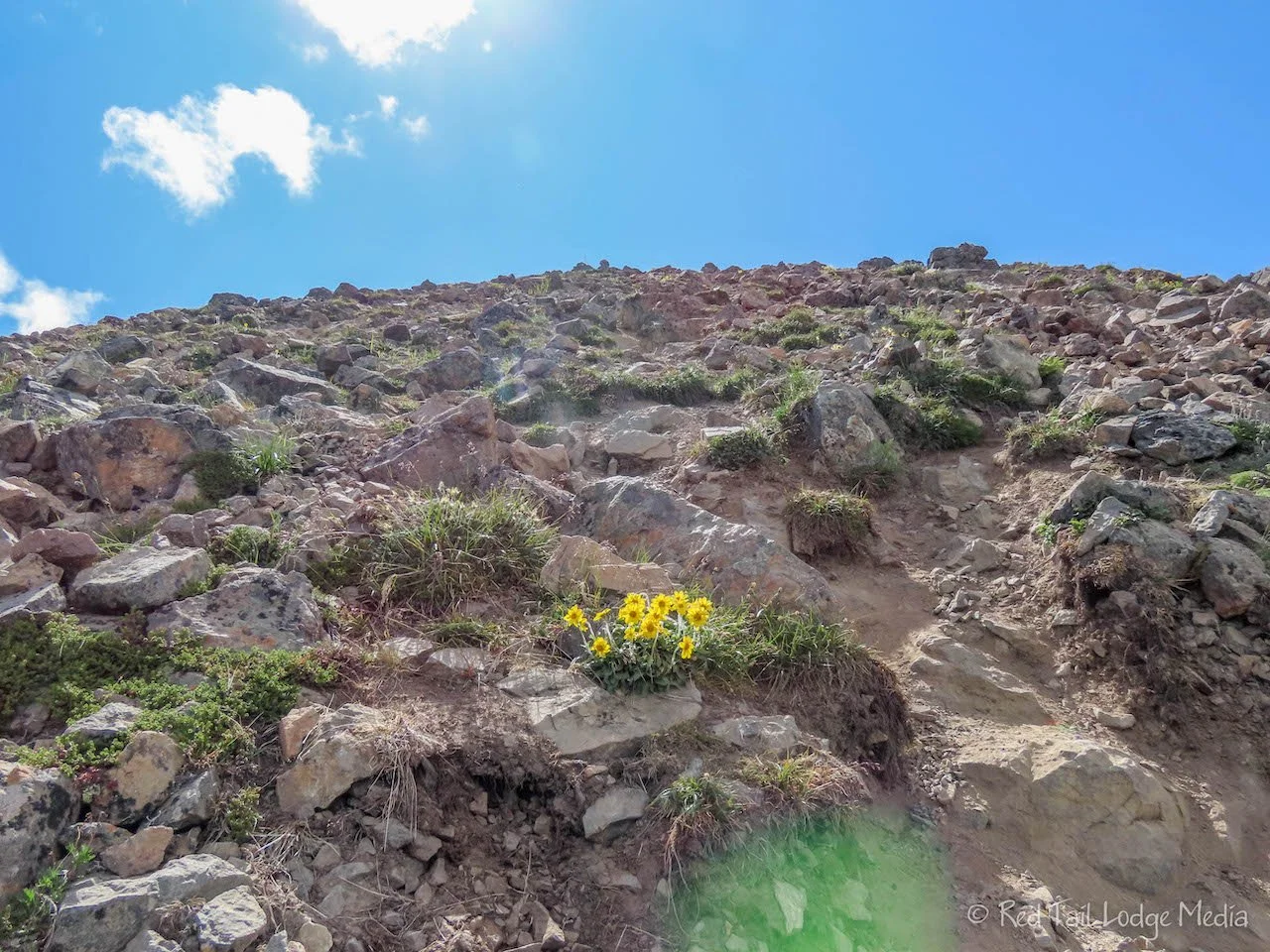 The scramble is across a boulder field, with a lot of loose rock. Ann got an “owie” when a 10 inch diameter rock rolled down onto her shin. Other than that, we did fine. We just needed to go slow and pay attention to where we placed our hands and feet.