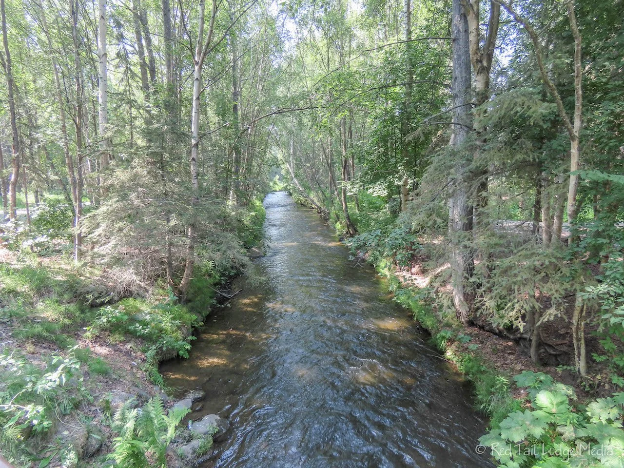 After returning our rental bikes, we walked down to Ship Creek. There is a trail along the creek with a couple of pedestrian bridges where you can observe the salmon running up stream. The King Salmon normally run from late May to mid July and the Silver Salmon run from late July to early September. However, it must have been in-between the two runs, because we did not see any fish. Oh, well.