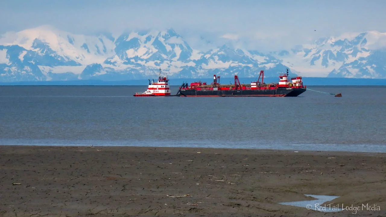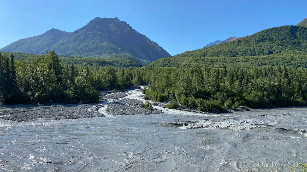 Tuesday was another clear, sunny day as we drove from Matanuska Glacier to Anchorage. The Glenn Highway follows the Matanuska valley alongside the Chugach Mountains on the way to Palmer. The Matanuska River near the road was a gray color, due to all the fine silt created by the glacier. We saw a couple of clear streams flow into Matanuska River, with the colors mixing at the confluence. Another gray river flowed into the Matanuska, so there must be another glacier that feeds that river as well.