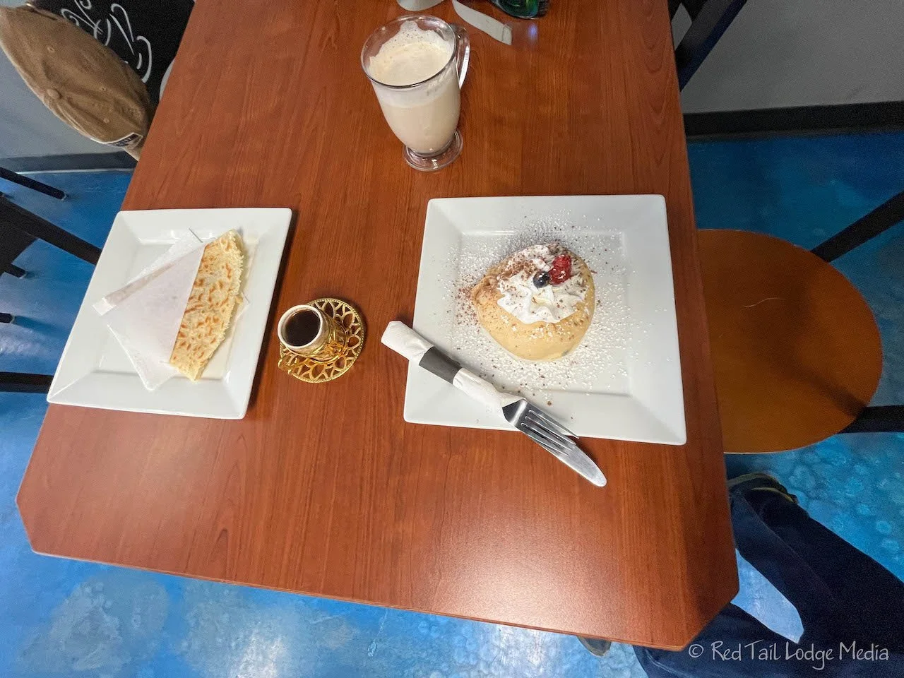 Our first stop was the Alaska Crepery for breakfast. We got there a couple of minutes before they opened at 8 am. We enjoyed our nice light breakfast. Ann had the whipped cream and berry crepe while Keith ordered the brie, walnut and honey crepe. Very tasty. While Ann had a chai latte, Keith tried the Turkish coffee. It’s the first time he’s had one. It was tiny but potent. He would order it again, but not two in the same day.