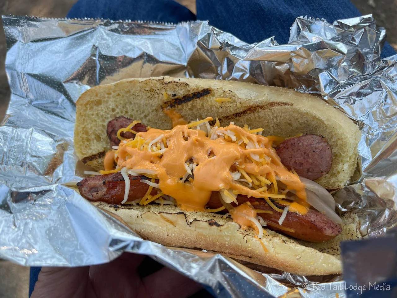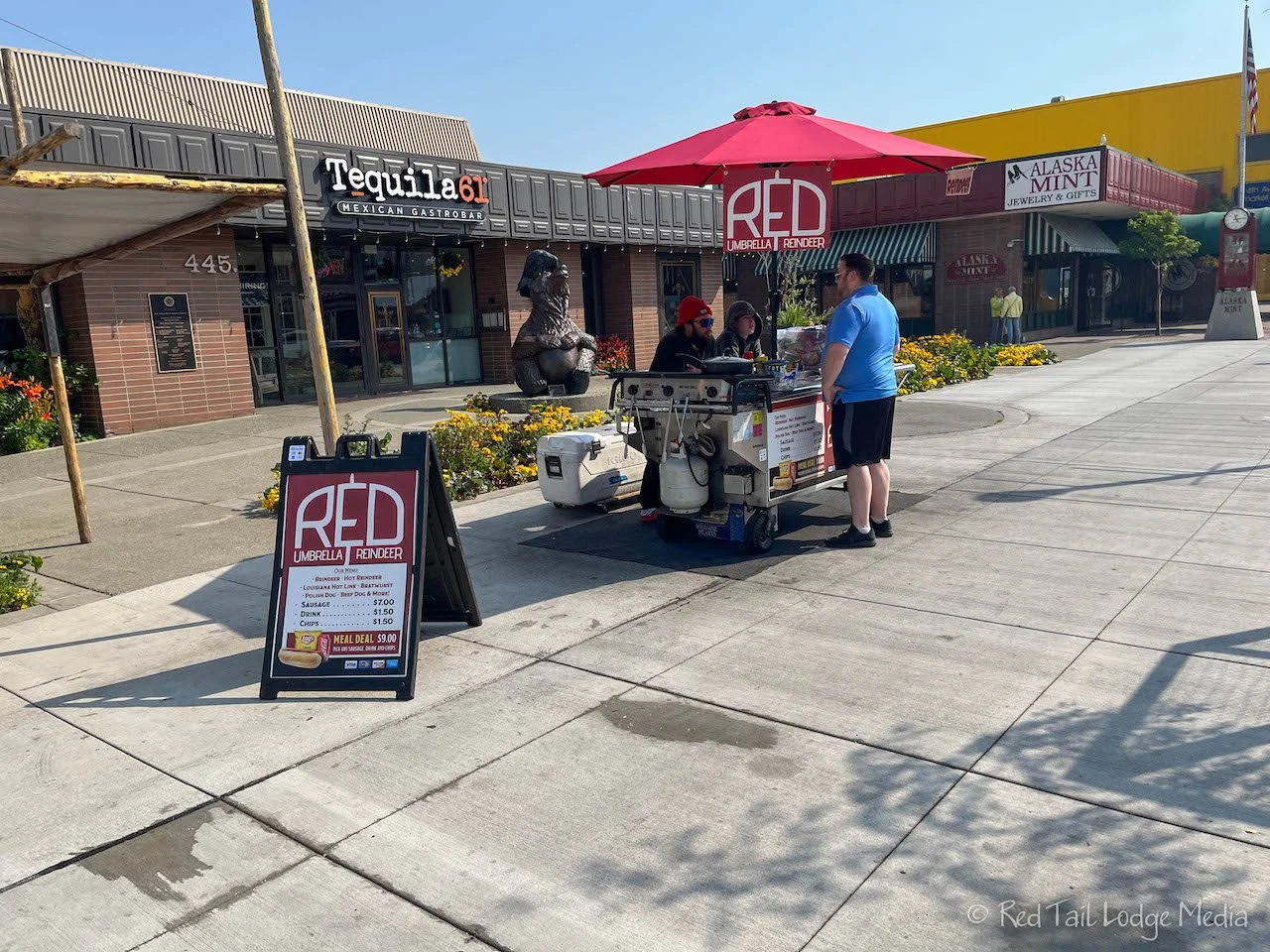 There was a free music concert in Peratrovich Park, next to the Visitor Center, from noon to 1 pm. So we grabbed a reindeer sausage from the Red Umbrella Reindeer Hot Dog Stand across the street and sat down in the park to wait for the concert to begin. The sausages were delicious. They grill the sausages to order and served them with grilled buns and sautéed onions. There were a variety of sauces to choose from. We both picked the Sriracha Mayo, which added a nice zing.