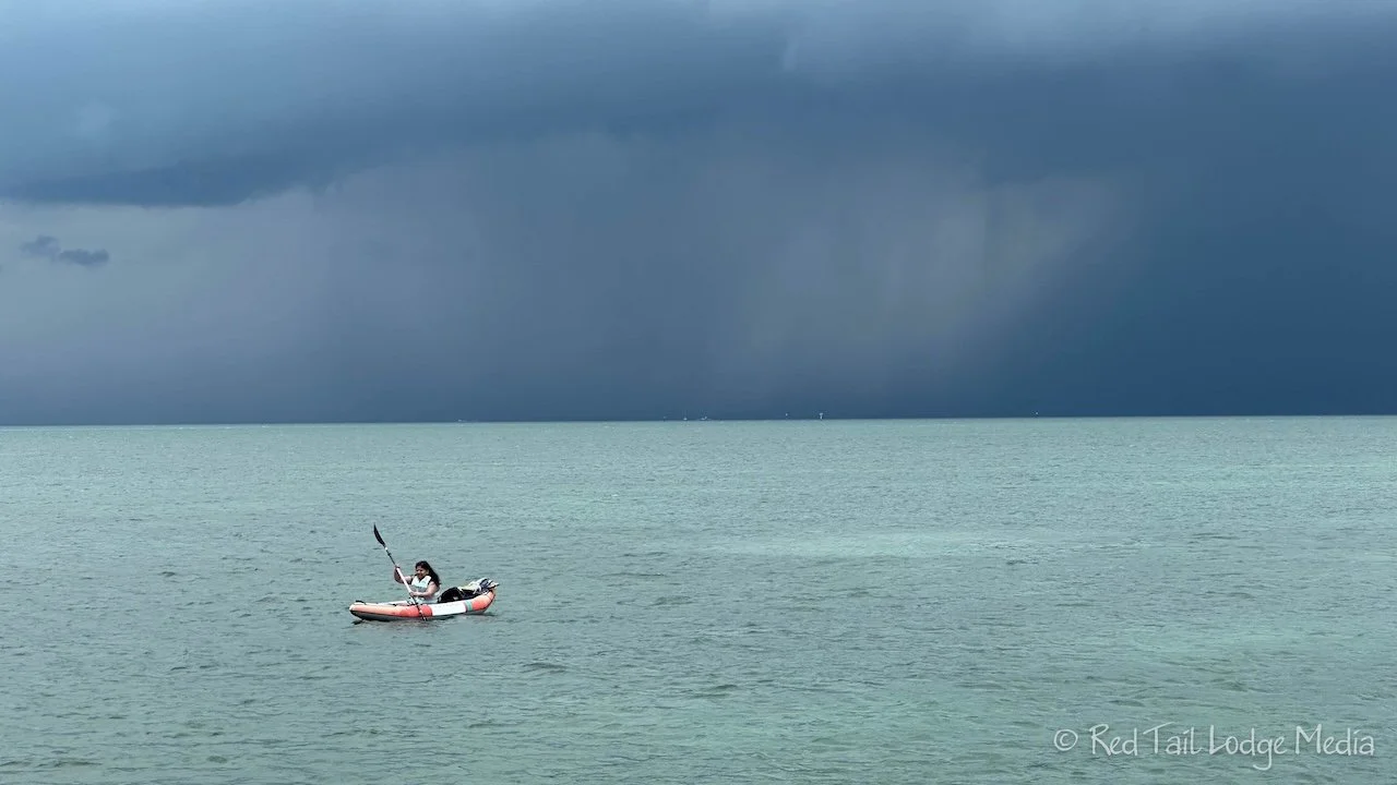 Ann was on the far side of the island when she heard the air horn. That meant she needed to head back to the boat. There had been rumblings of thunderstorms in the distance, so she figured the storms were getting closer than the captain wanted. She started swimming as fast as she could around the island. As the sailboat came into sight, so did Captain Frank in a kayak. He had Ann grab hold of the end of the kayak and gave her a lift back to the sailboat. Sure enough, he wanted to get moving due to the approaching thunderstorm. So our anchor time was cut a little short.