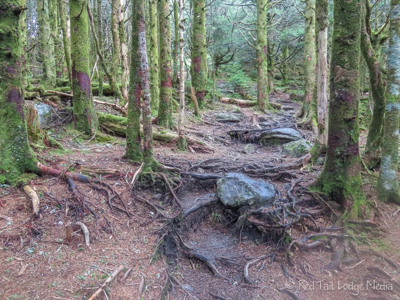 The Mount Mitchell Trail goes from the campground up to the peak. However, it is over eleven miles with an elevation gain of 3690 feet. Even though our host said the trail does not have any scrambling, the distance and elevation gain was pushing beyond our comfort level. Besides, we wouldn’t get up to the peak until afternoon. Instead, we decided we would drive up to the peak, then go for a short hike from the top. Mount Mitchell is about a 45 minute drive from the campground. We could get up there early and stay for a while, which would increase our chances of getting to see a nice view.