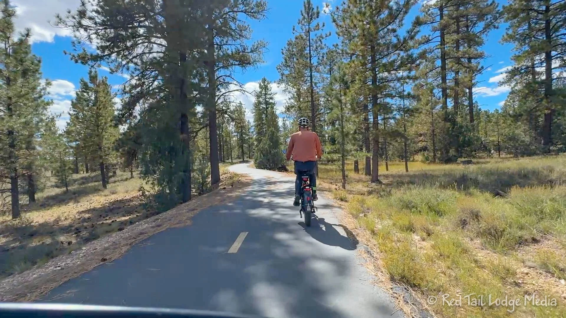 Thursday we relaxed in the morning and went for a bike ride in the afternoon. There is a paved multi-use trail that runs through the park, from Inspiration Point all the way to the shuttle parking in Bryce Canyon City. The path is about five miles long, so it’s ten miles round trip. A sidewalk continues through town and a bike path leads from Bryce Canyon City through Red Canyon. The Red Canyon Bicycle Trail is over 11 miles long (22.7 round trip) with an elevation gain of 1138 feet. Bikes are also allowed on the park roads, so you could ride all the way out to Rainbow Point if you are so inclined, but that is 36 miles round trip and who knows how much elevation gain. You can rent bicycles, including e-bikes, both inside the park and in Bryce Canyon City.