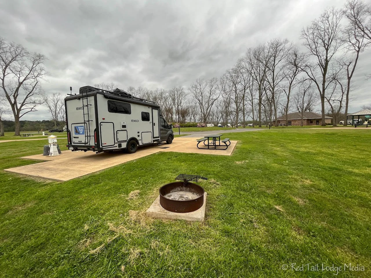 After dinner, the sky really let loose. Thunderstorms lasted until morning. The rain made a pleasant sound on Red Tail’s (our Winnebago EKKO’s) roof to lull us to sleep, but the loud thunder would wake us up.