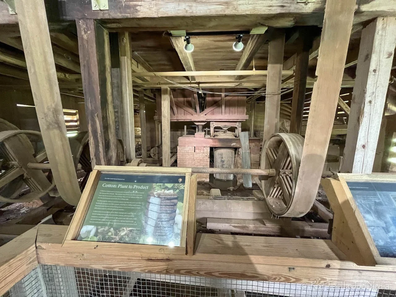 You can tour the grounds by yourself, as there are ample interpretative signs, both outside and inside some of the buildings. The blacksmith shop, hospital, gin house, and one of the tenant cabins were open and available to explore. When we were there, the plantation store was locked and we couldn’t go inside. There is a mowed strip through the grass making a trail around to all of the buildings. Due to all the rain, the grass was wet and there were many large, standing puddles and swampy areas that were hard to avoid. We chose to just get our feet wet.