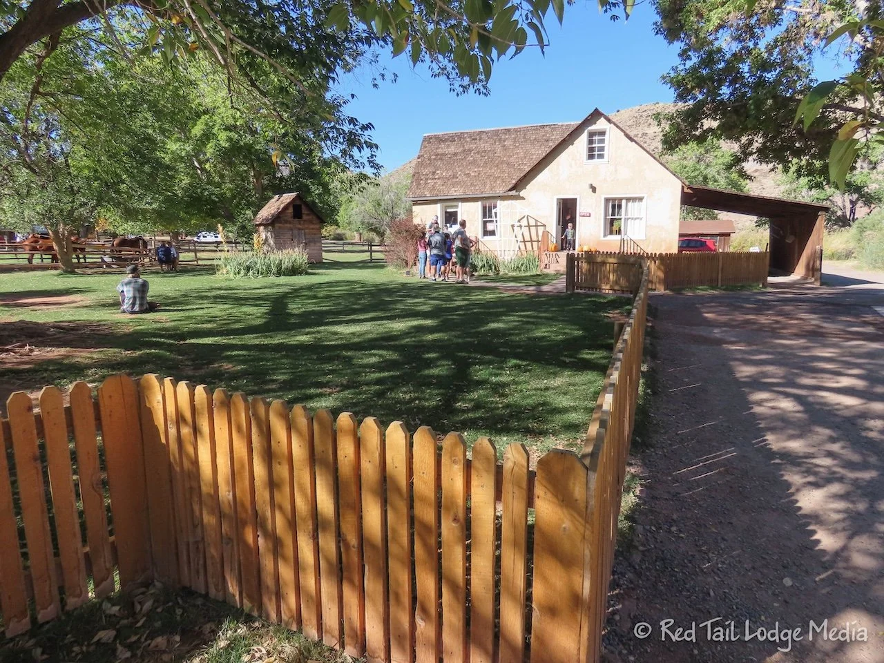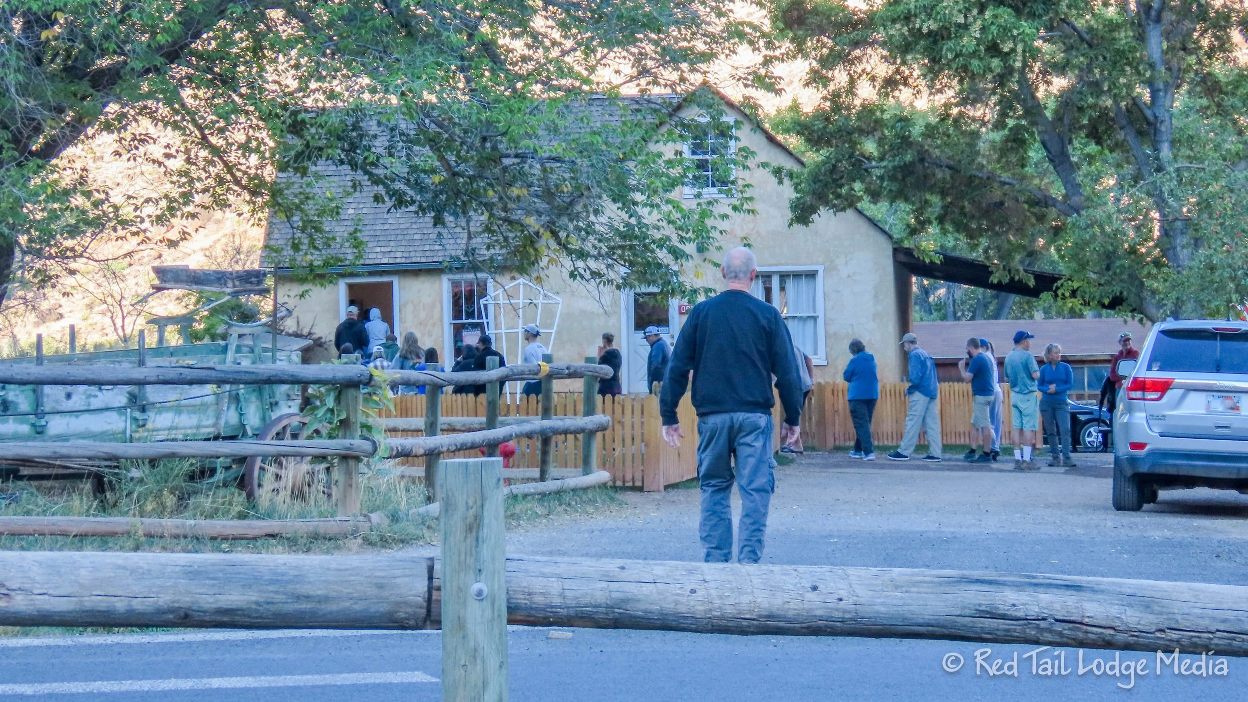 The lot is right across the road from the Gifford House, where they sell the pies. It opened at 9 am and we could see a long line of people out front waiting for the Gifford House to open. The Gifford House is in the Fruita Historic District. Fruita was a Mormon settlement which planted a lot of orchards in the area. Gifford House is mainly a store but one small room of it is a museum. But not many people go inside to see the museum, they are mainly there for the pies.