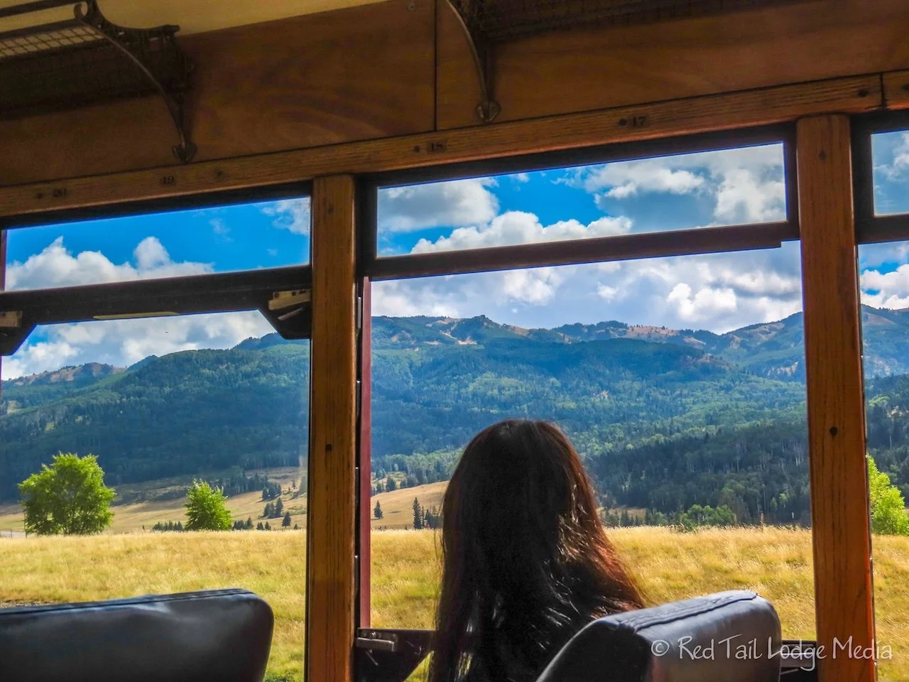 We chose the Chama Limited, which took us by train to Osier and back. Lunch at Osier was included in the ticket price. We left Chama at 10 am and were scheduled to return around 4 pm. There are three different accommodations, Parlor, Deluxe, and Coach, depending on how nice of a train car you wanted to ride in and how much drinks and snacks were included. We chose Coach. The double bench seats seemed plenty comfortable enough for the ride and the large windows opened easily for unobstructed views of the beautiful scenery.
