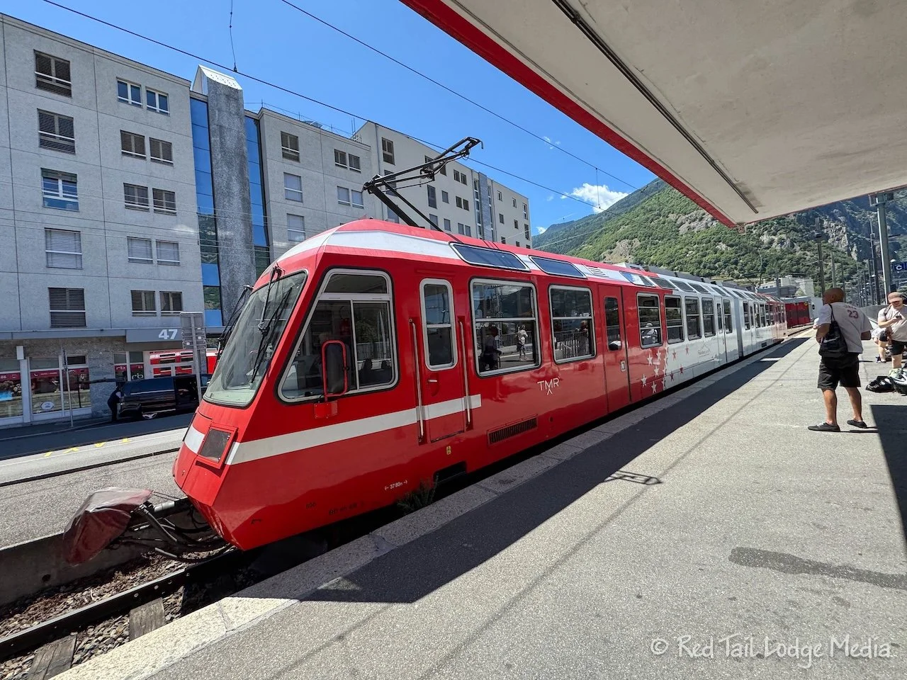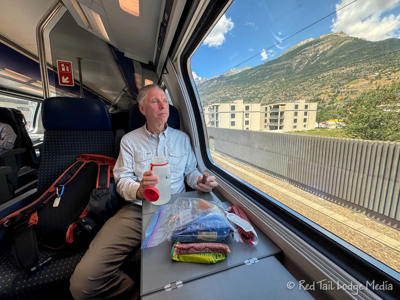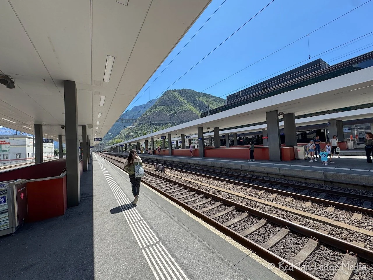 In Visp, we had scheduled a 32 minute connection. When we arrived in Visp, at 12:04, there was an earlier train going to the same destination, Martigny. Since we didn’t have seat reservations, we could have taken it, but we would have had to edit the journey in our Eurail phone app before boarding the train, so we decided to stick to the original plan and wait for the next one. Ann purposely didn’t schedule tight connections. However, in hindsight, it might have been better to book the tighter connections, knowing there were later options if we didn’t make the connection. If a connection is missed, then there is time while waiting at the station to edit the journey to the later train. However, it does require an internet connection. So that would backfire if there wasn’t good cell service at the train station.