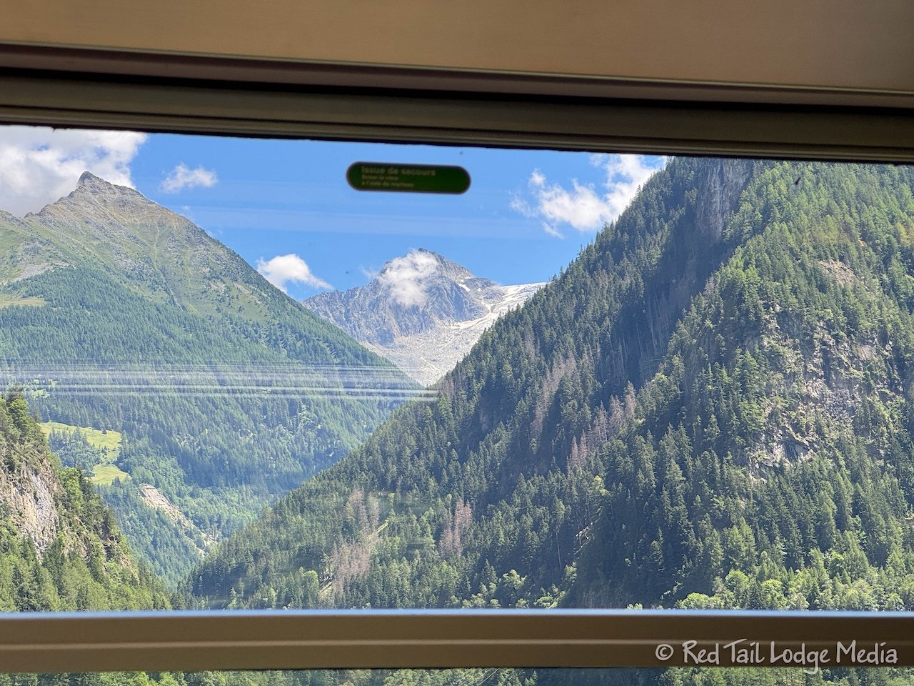 We reached Martigny at 1:16 pm and had about an hour to wait for the train to Vallorcine. It was a regional train, called the Mont Blanc Express. It was a steep, winding, and beautiful ride through the mountains up to Vallorcine, just over the border in France.