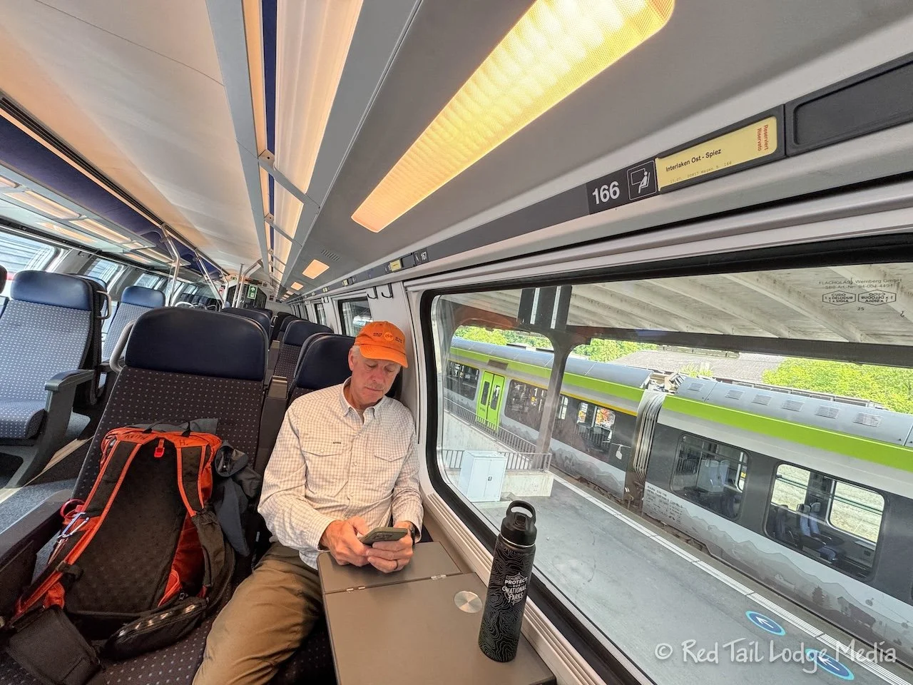 For the next leg, Interlaken Ost to Spiez, we had seat reservations. Reservations were optional, but we like knowing that we’ll have a seat. This was the first travel day on our Eurail Passes. We bought the Eurail Global Flexi Pass which gave us ten non-consecutive days of travel within a 60 day window. However, the passes don’t cover seat reservations, so we had to pay for those separately. We bought the seat reservations through the Eurail website. It’s more expensive that way than going directly to the appropriate train company, but we liked having all of the reservations in one place.