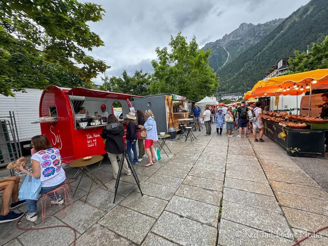Chamonix is a town in the heart of the French Alps, at the base of Mont Blanc, the highest peak in Western Europe. In the winter, Chamonix is a ski resort, one of the oldest in France. In the summer, it attracts all kinds of outdoor enthusiasts, including hikers, backpackers, paragliders, white water rafters, and mountain bikers. Others come for just the food, drinks, and stunning views from the valley and from the top of nearby gondolas. The Tour du Mont Blanc (TMB) long distance hiking trail can be reached from Chamonix via a short gondola ride. We were in Chamonix for the TMB. We spent three nights in Chamonix before starting the TMB and spent several more nights in Chamonix after we completed the trail. This post only covers our first stay in Chamonix.