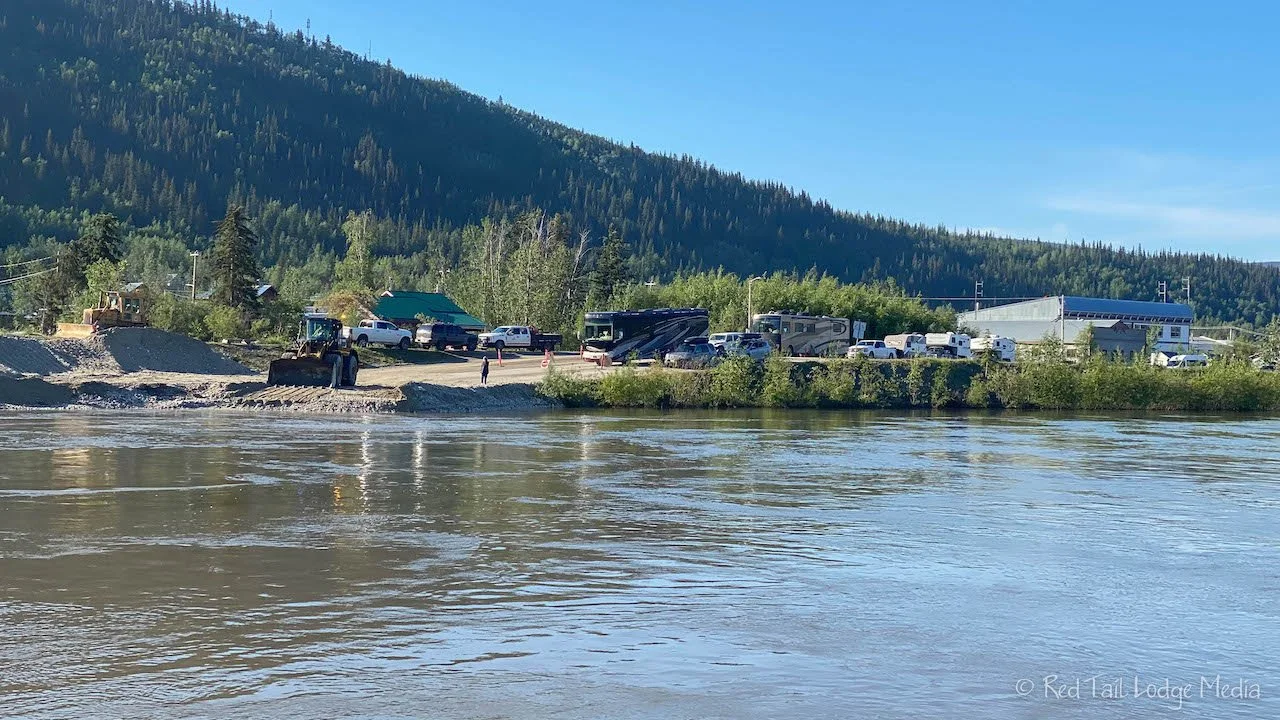 There are three separate lines for the ferry, one for small vehicles (<24 feet), one for RV’s, and one for semi-trucks. When we arrived, there were only three RV’s in line. We qualified for the small vehicle line so we were first in that line. Right when we got there, two of the RV’s loaded onto the ferry. While the ferry was en route, a front-end loader was working the gravel ferry landing while dump trucks drove in to dump more loads of gravel. By the time the ferry returned, about ten minutes later, the lines were a little longer and included a semi. They loaded us and another small vehicle, along with the semi onto the ferry. We didn’t have to wait very long at all!
