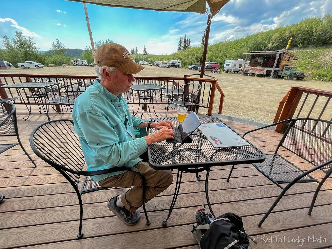 A little later in the afternoon, we headed back over to the cafe with our laptop and iPad to work offline. Keith ordered a beer while Ann enjoyed another ice cream cone from the cafe. We sat out on the deck just outside the cafe. Well, we didn’t get a lot of work done because fellow travelers would stop by and chat with us. We actually enjoyed this better. A few people who stopped were just passing through, getting a refreshment before they continued on their journey. Others were staying in the campground. It was a great way to spend an afternoon.