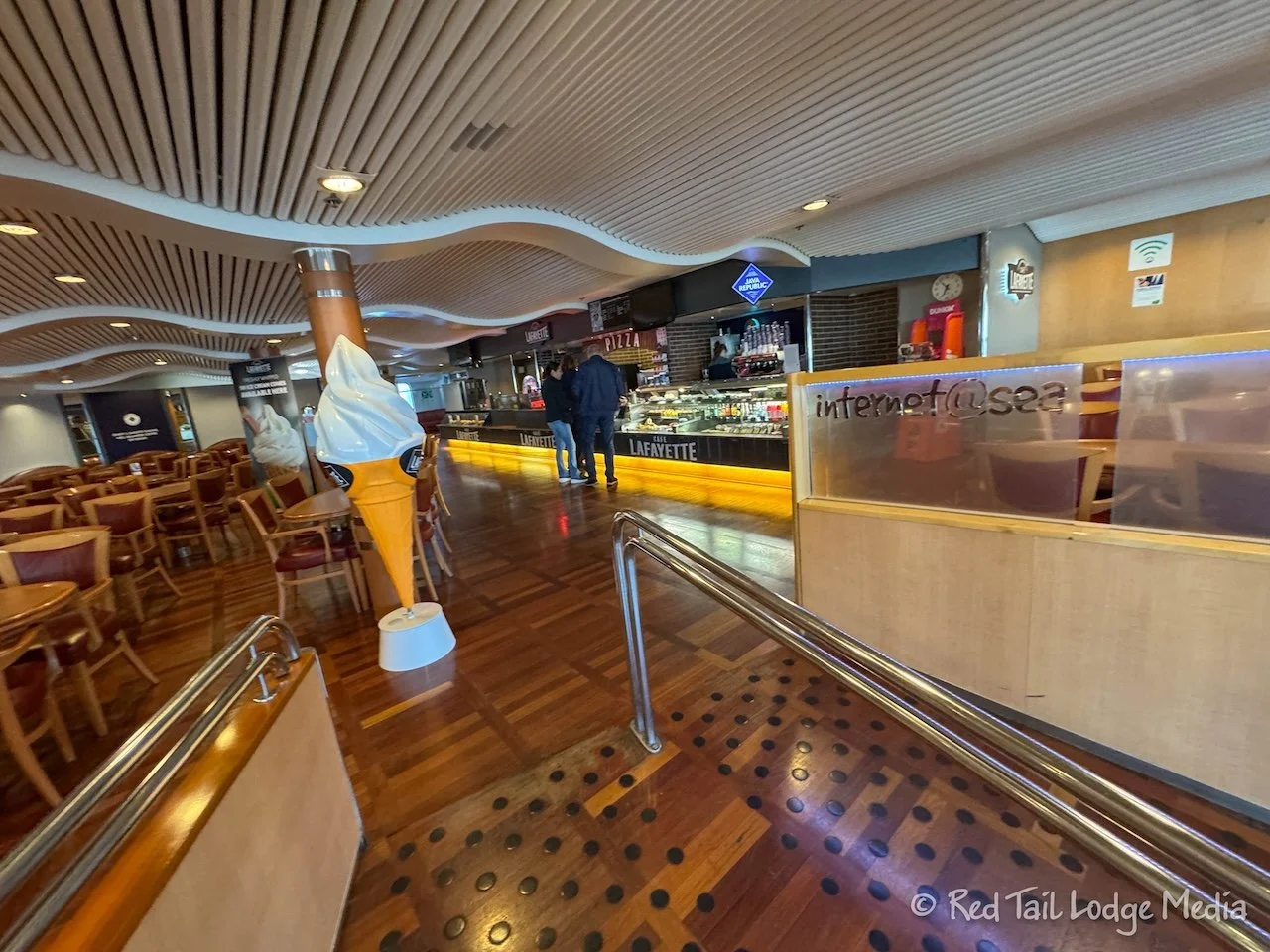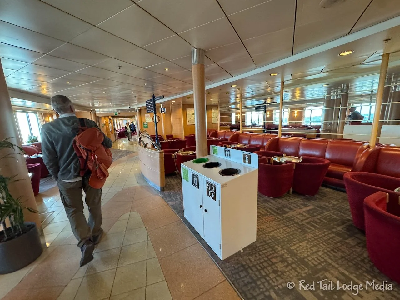 So we were happy to arrive at the port around 6:30 am, with plenty of time to catch our ferry. Irish Ferries was already checking in passengers for our 7:45 am departure ferry. It was a pretty easy check-in. They just checked our booking number and gave us tags for our checked luggage before hauling them away. We only sat in the waiting room for about 15 minutes or so before they let us board the ship. Unlike in Holyhead, where we had to board a shuttle bus over to the ferry, this time we were able to walk across a walkway bridge right onto the ship, similar to an airplane.