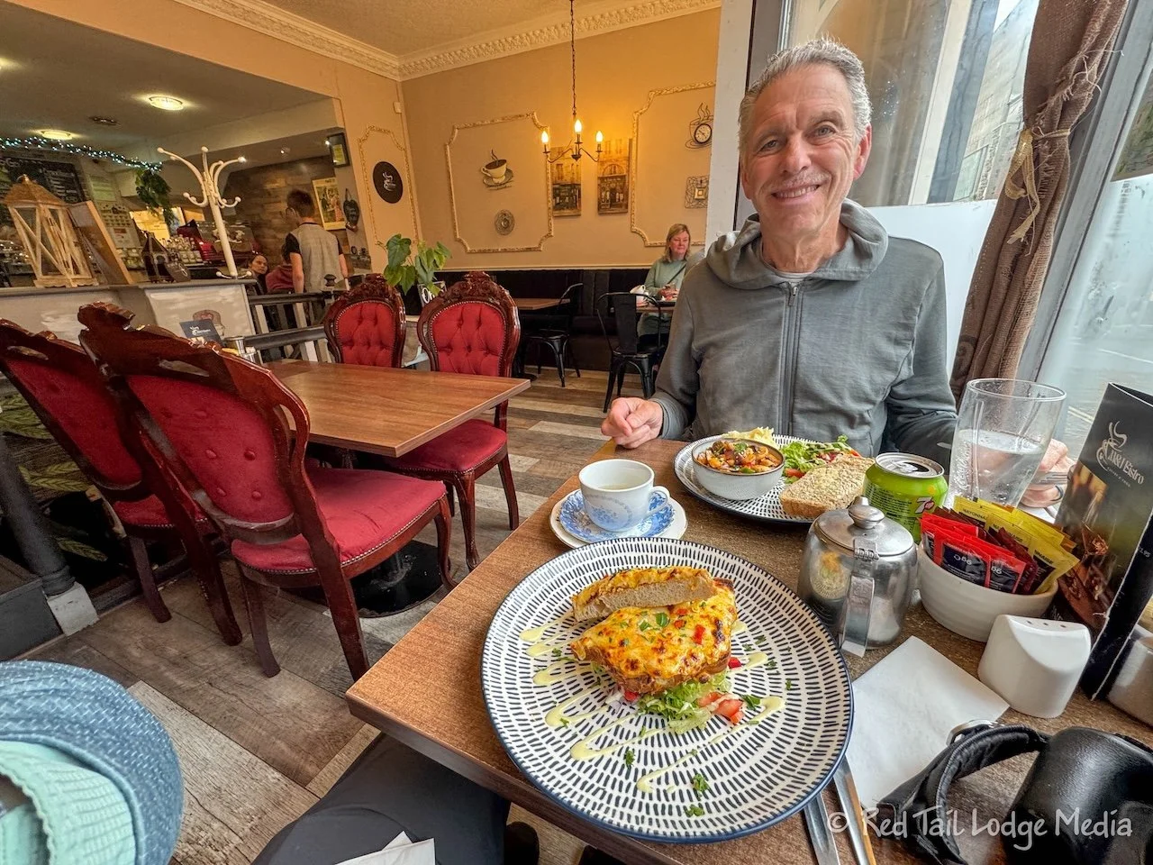 We explored the streets inside the wall for a little bit before going inside M & J Cafe for lunch. It was a cute, little place. Keith had one of the specials for the day, goulash with mashed potatoes, while Ann tried the Welsh rarebit. Rarebit is basically a fancy melted cheese on toast, but it was very tasty. Ann likes her melted cheese.