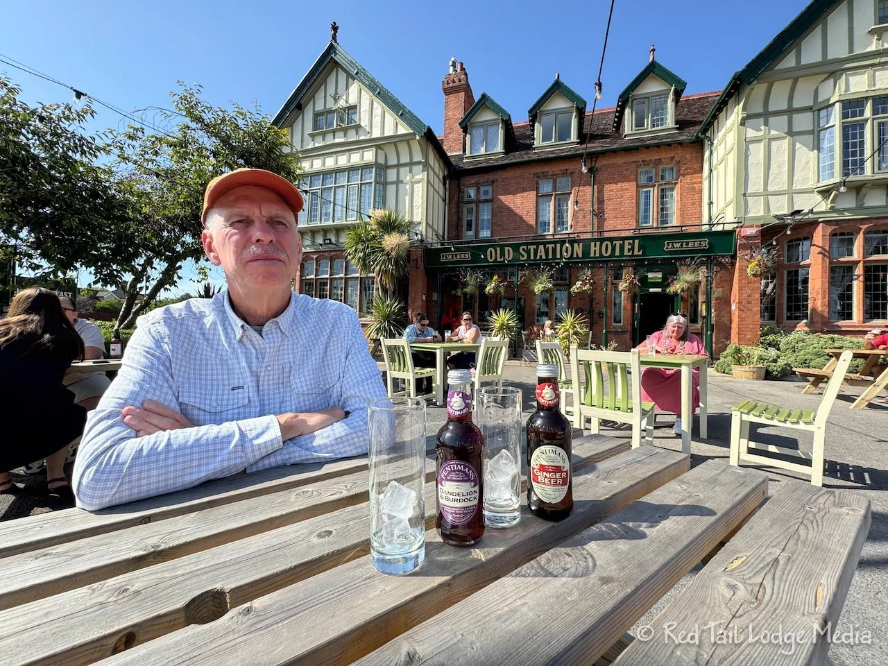After dropping off our bags, we went downstairs to the pub and ordered a couple of soft drinks so we could sit outside to enjoy the warm sunshine. Ann got a Fentimans ginger beer, but Keith tried Fentimans Dandelion & Burdock. It had an interesting flavor. He said he wouldn’t order it again, but Ann thought she might.