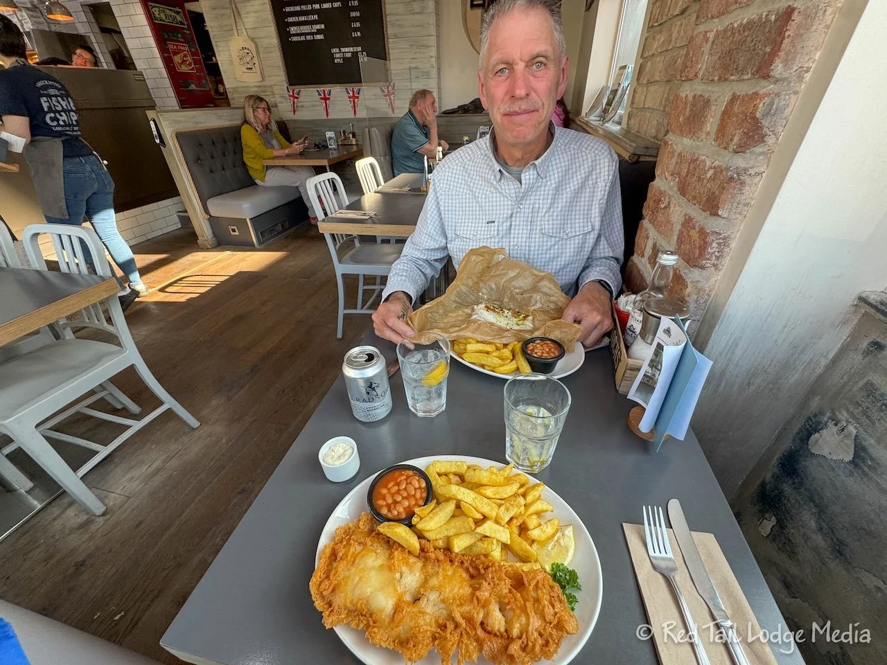 After lunch, we decided to go back and relax at the hotel. We were still a little tired from getting up so early the day before. For dinner, we walked up Conwy Road to Enochs Fish & Chips. Ann ordered the haddock fish & chips while Keith had haddock, but the En Papilote. En Papilote is a French style of cooking. The fish is wrapped in parchment paper with a sauce and baked. Keith chose the chili, lime, and coriander sauce. If he got it again, he thinks he would have chosen the lemon sauce. Neither one of us wanted peas as a side, so we opted for the baked beans. Enochs provides free refills on the chips (fries), but we were so full that we could barely finish the first serving of chips. All the food was quite tasty.