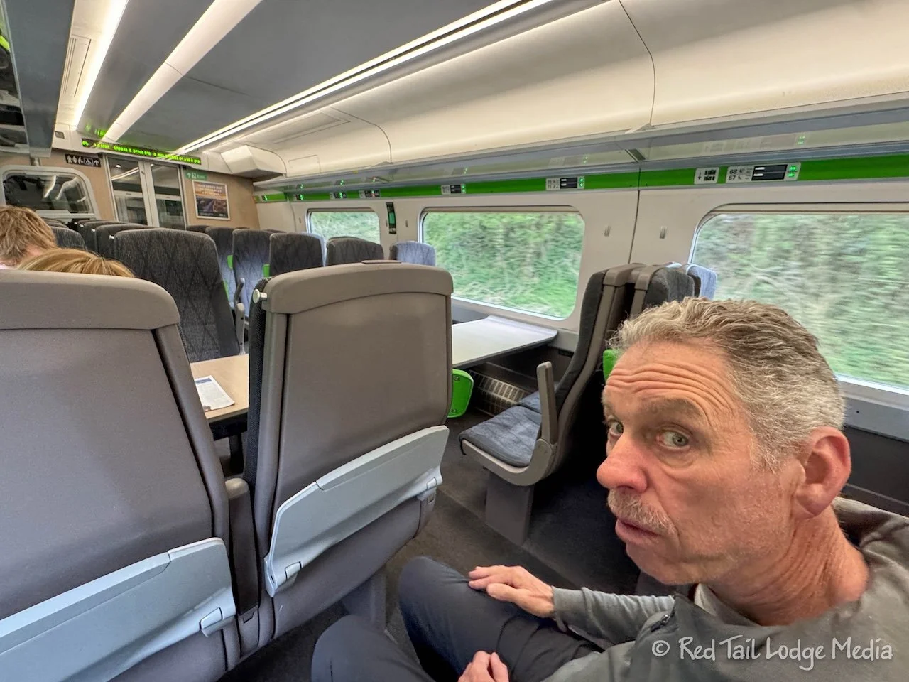 There was a convenience store with food, so we bought ourselves lunch. Keith got the cajun chicken pasta salad while Ann opted for the sweet potato falafel salad. We paired our salads with potato chips and drinks. They weren’t bad for a prepackaged meal. Thankfully the chairs were comfortable. After we finished eating, we pulled out our laptop and iPad to occupy ourselves until it was time to board the train. The train platform was right outside the ferry terminal building.