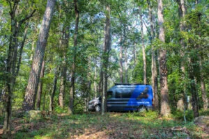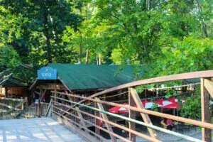 The NOC is located right where the Appalachian Trail crosses Highway 19 near Bryson City, NC. It is in the beautiful Nantahala Gorge along the Nantahala River. The center caters to white water rafting along with kayaking and zip lining. It has a couple of restaurants and stores along with some live music in an outdoor seating area. It also has lodging in cabins, bunkhouses and a motel. So it is quite the oasis for thru-hikers of the Appalachian Trail. Our plan was to hike the Appalachian Trail from Winding Stair Gap to the NOC over three days, so we needed a place to park our van during that time. From our research, we knew that the NOC allowed people to park vehicles there while they were on the trail. We went into the Outfitter’s Store to get more details. Even though there was no charge, there was a form to fill out which let the NOC know what days we were going to be on the trail. They provided us a map which showed us where to park at their basecamp area along with a permit to display in our windshield. We asked, but, unfortunately, they do not allow people to camp in their vehicles there. So, after enjoying a nice dinner at the River’s End Restaurant and soft serve ice cream at the Big Wesser, we drove over to the Tsali Forest Service Campground, less than ten miles away, to camp for the night.