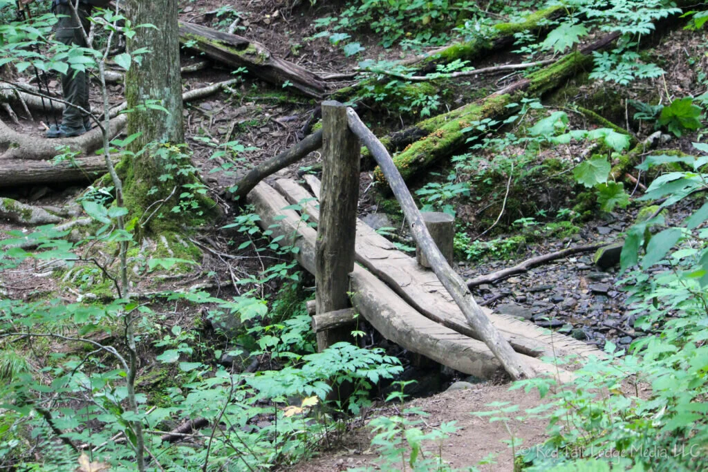 A couple of times we passed through groves of mountain laurel trees, but there were not many blossoms left as it was a little late in the season for them. There were quite a few wildflowers along the trail every now and then where the sunlight peeked through the trees. Due to the moist environment, there was an abundance of a variety of mushrooms and other fungus, with some of them quite large and vibrant in color. We didn’t see any large wildlife, but did see quite a few little critters, like moths, butterflies, millipedes, snails and slugs.
