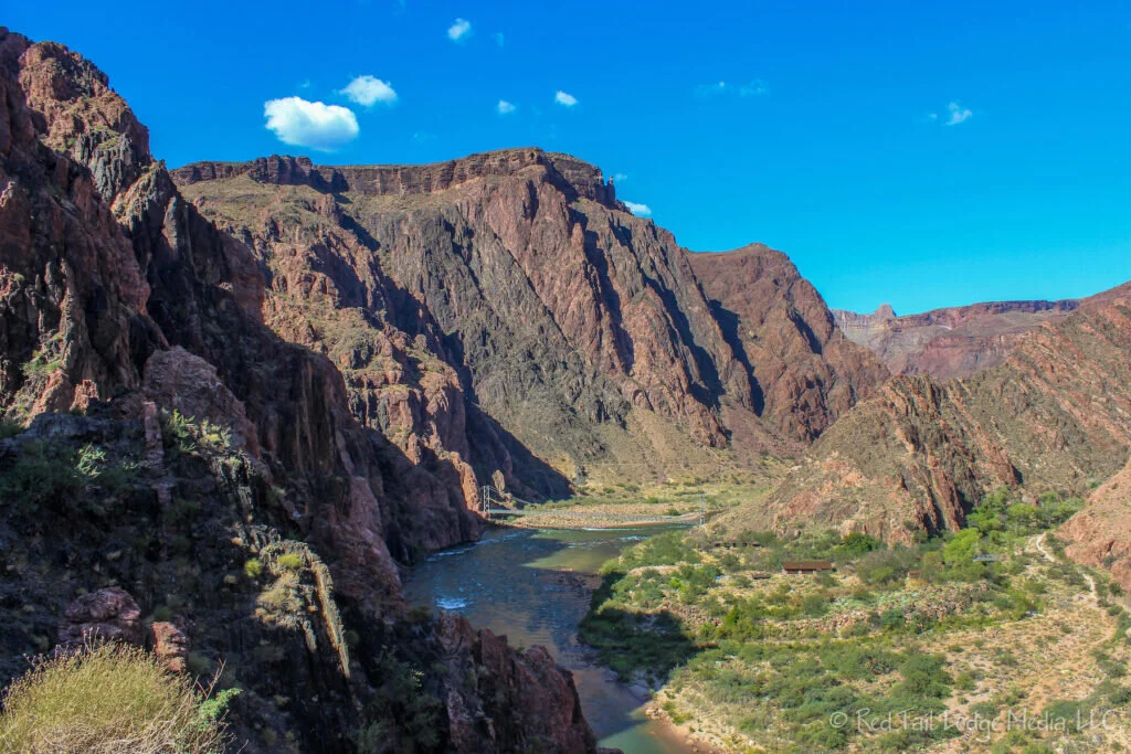 Happily, there was no need for an alarm to rouse us from our tent at Bright Angel Campground. Our plan for the third day of our Rim to Rim hike was to relax and explore the bottom of the Grand Canyon. The loose schedule was to hike the easy River Loop Trail in the morning before it got hot, find a place to stay cool in the heat of the day, then enjoy our dinner reservations at Phantom Ranch.