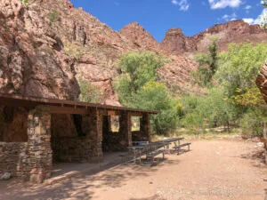 Back at our campsite, while we were charging our phones using the battery pack (paid link) we carried with us, our entertainment included watching a preying mantis struggle to get down from our picnic table seat and eventually fall to the ground. He did not appear to be hurt as he crawled away. After making dinner, we returned to Phantom Ranch for the 7:30 pm Ranger Program which was hosted again by Ranger Kaylee. Kaylee is normally stationed at the North Rim, but came down to Phantom Ranch for a few days. She hiked down from the North Rim earlier that day in about five and a half hours. Considering it took us two days, we were impressed. The 7:30 pm program was a discussion about the threatened Mexican Spotted Owl and the recent changes to the Endangered Species Act.