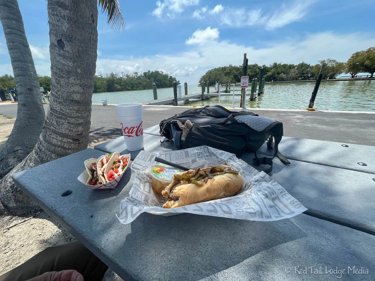 In between the two tours, we ate lunch from the food truck at the marina. Ann had an Italian sausage with peppers and onions with a fruit cup while Keith had the street taco trio, one pork, one chicken, and one mahi-mahi. Ann was hoping the fruit cup was fresh fruit, but it was a prepackaged one. At least is was not swimming in heavy syrup. The food was OK, but it was convenient. It saved us the half an hour walk back to the campground to prepare our own lunch. For dessert, we picked up a couple of ice cream novelties from the marina store.