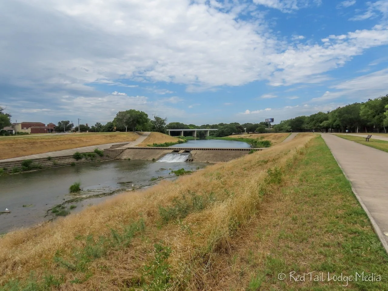 To try to beat the heat, we set the alarm for 6 am Thursday morning. We hadn’t gotten any exercise in several days, so we want to fit a bike ride in before the temperatures got too unbearable. The system of Trinity Trails in Fort Worth reached close to the campground. We probably could have reached the trails by riding from our camp site, but we didn’t want to waste any of the cooler hours of the morning trying to reach the trails, so we drove over to the Art Cowsen trailhead. The trailhead was only a few minutes away and had ample parking.