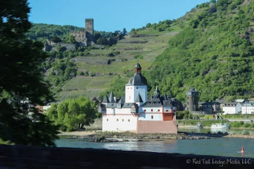The Mosel and Rhein rivers are in the heart of German wine country. The river banks have one iconic scene after another and are lined with vineyards, cute little towns and old castles that dot the hilltops. The castles include Burg Thurant, Schloß von der Leyen, Marksburg, Burg Maus (Mouse), Burg Katz (Cat), Burg Gutenfels, and Burg Pfalzgrafenstein.