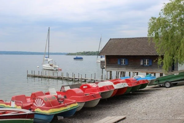 We took a drive from Munich to explore the region around Ammersee (lake). The first stop was lunch at the beer garden at Kloster Andechs (monastery), well-known for their brewery. After a peek inside the baroque church and climbing to the top of the steeple for the view, we continued our drive down to Herrsching where we went for a peaceful walk along the lake shore and stopped for coffee and kuchen at an outdoor cafe with a view of the lake.