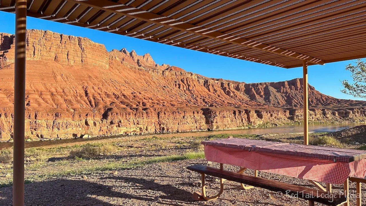 Lee’s Ferry Campground is first come/first serve. We arrived in the early afternoon. The campground was completely empty except for what looked like the campground host. We were able to snag the best site in the campground, with a large shade structure over the picnic table and a great view of the Colorado River below us. There were only two restroom buildings in the campground and the one closest to us was closed. But we didn’t mind the walk to the open one in exchange for the excellent view.