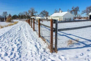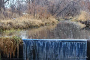 Hike 7 was 10.6 miles with a 175 foot elevation gain in five hours on December 10, 2019. We took the Perimeter Trail in Barr Lake State Park, which goes all the way around the lake and across the dam, along with all of the side trails and boardwalks. The temperature was in the 30’s. The trail had patches of snow, ice, and mud, but not very deep. RB used gaiters but did not need them. We also did not use trekking poles nor our Yaktrax (paid link) as we did not need them. The state park charges an entrance fee of $8 per vehicle. Only half of the park is a wildlife refuge. Dogs, boating and hunting are allowed in the other half. Several boardwalks and bird blinds are located in the refuge. There is a nice nature center with lots of activities for children. The park is a popular field trip destination for groups of school children and we remember both of our children having visited here. We heard there are 27 bald eagles that call the park home, with one nesting pair. Geese, ducks, gulls, pelicans, bald eagles, hawks, prairie dogs, squirrels, great blue heron, and other birds are the wildlife that we saw that day. We also saw deer tracks and raccoon tracks, but did not see any deer or raccoons. A fish head skeleton was in one of the bird blinds and a large fish head skeleton was along the trail, perhaps left by an eagle?. A bald eagle nest is visible in the distance from the gazebo at the end of a boardwalk. Along the northwest side of the lake (about mile 4.5 to 5.0), the trail runs right beside the train tracks. Quite a few coal trains went by, which were loud. Interstate 76 is not that far away and we could hear the traffic noise. The Perimeter Trail can be used by hikers, bikers and horses. We saw quite a few horse tracks, but no horses, and a couple of people on bikes. The trail goes along the top of the dam along the northeast side of lake. The trail on top of the dam (Crest Trail) is closed on Wednesdays and Saturdays from October through February for waterfowl hunting days. The lake was partially frozen, with interesting chunks of ice along the shoreline. A pleasant surprise was a tree that was made into a sculpture of a whimsical creature with human qualities. We ate our lunch of granola bars and apples outside of the Bruderlin Stone House at the north end of the dam. It is a historic house, built by Emil Bruderlin in 1890, which is now the headquarters of the Bird Conservancy of the Rockies. From all the birds we encountered that day, it is easy to see why they made Barr Lake State Park their headquarters.