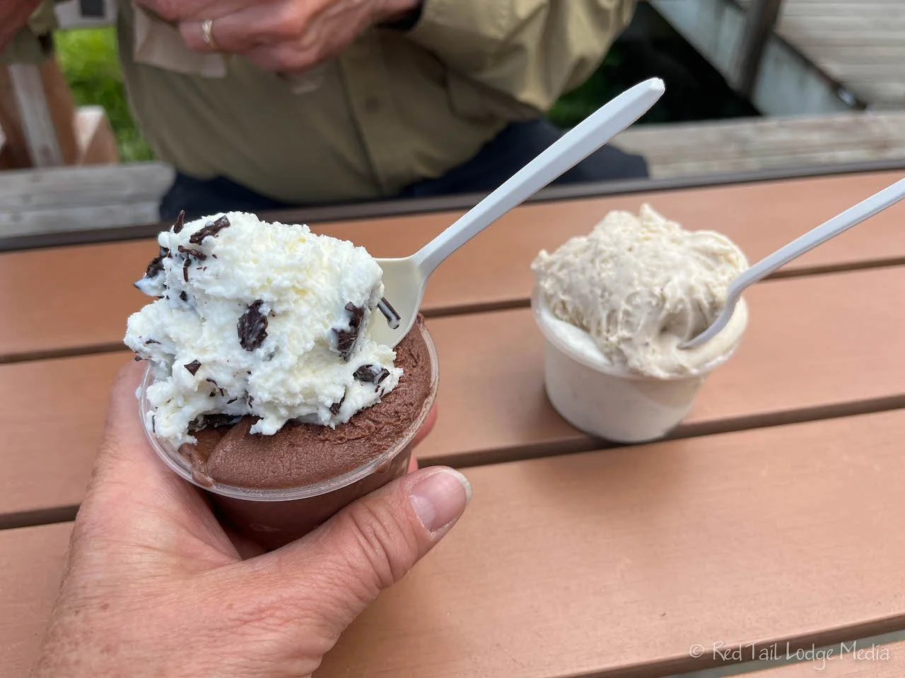 However, we did buy some ice cream from the Udder Delights stand. They were out of many of their flavors. Keith had vanilla, of course. But Ann tried the South of the Border flavor, a dark chocolate with cayenne and cinnamon. She liked it, ice cream with a kick!
