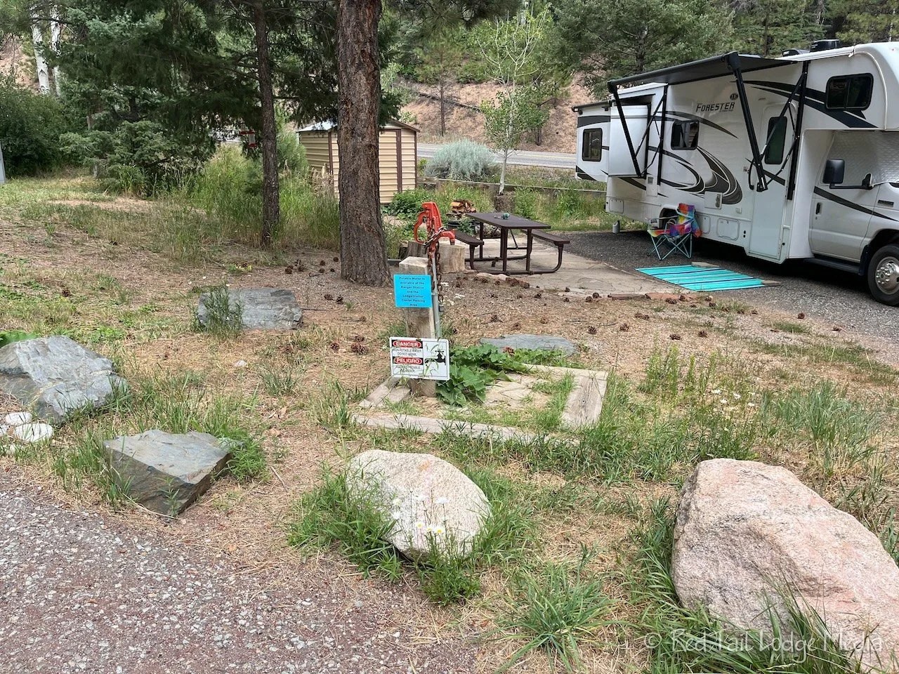 Just before we entered Hyde Memorial State Park, we passed Black Canyon Campground in the Santa Fe National Forest. We stayed there during Season One: Crisscrossing the Country (Taos Pueblo, New Mexico - July 16, 2019). From what we remember, the sites there are in a prettier setting, far away from the road.