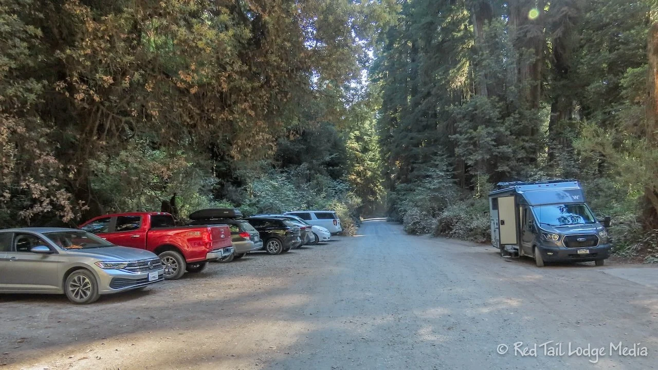 Tuesday we drove the Howland Hill Road to the Boy Scout Tree Trailhead. The road wasn’t that bad, certainly nothing even close to Donkey Creek Road, the road we gave up on when trying to reach Coho Campground near Olympic National Park. We left somewhat early in the morning to make sure we could find a parking spot at the trailhead, especially since we are one of the larger vehicles on the road. At 9 am, there wasn’t much traffic on the road, which made it easier to navigate. It took us about half an hour to reach the trailhead from the campground, a distance of only 7.4 miles.