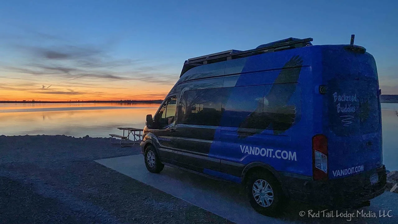 When we arrived at Wilson Lake State Park, the park office was already closed. We did not have reservations since this was still their off-season, so all the sites were first come, first serve. We read the information board on how to self-pay and drove around to pick out a site. We liked the quiet solitude of the Grama Campground, with the variety of birds singing in the nearby trees. However, the bathhouse was closed. We could have used our emergency toilet, but decided instead to pay the extra two dollars for the electric and water hook-up sites in the Big Bluestem Campground. The site we picked out was at the end of a point, right on the lakeshore. We arrived just in time to watch a beautiful sun set out over the lake.