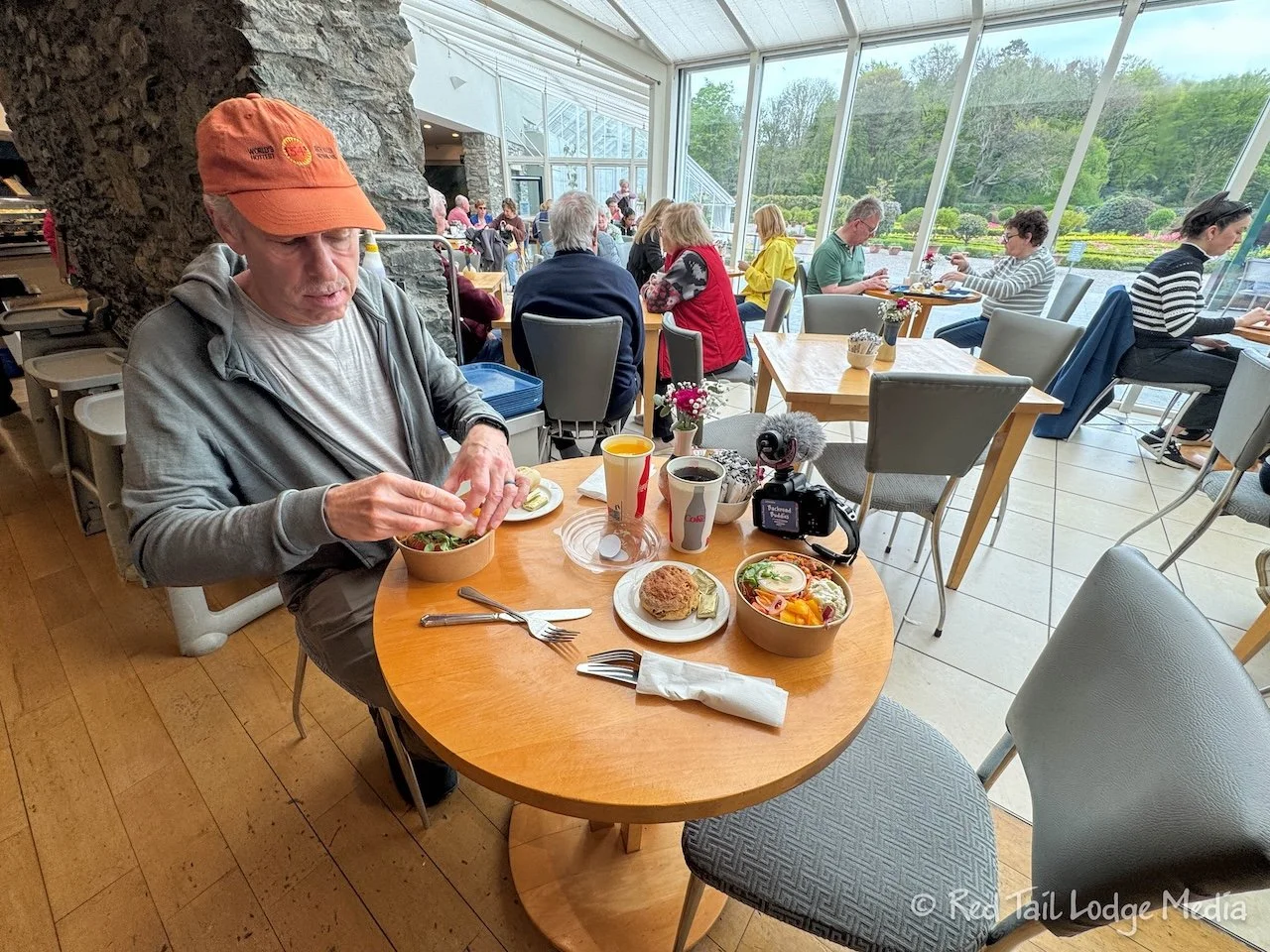 After our hike, we went to the cafeteria for a late lunch. This time we both got a pre-packaged garden salad. Keith also had a bread roll with butter while Ann chose a scone. The garden salad was nice. It was what the Germans would call a gemischter Salat. In addition to mixed greens and raw vegetables, there was a scoop of potato salad and a scoop of grilled veggies with beans and some kind of seasonings.
