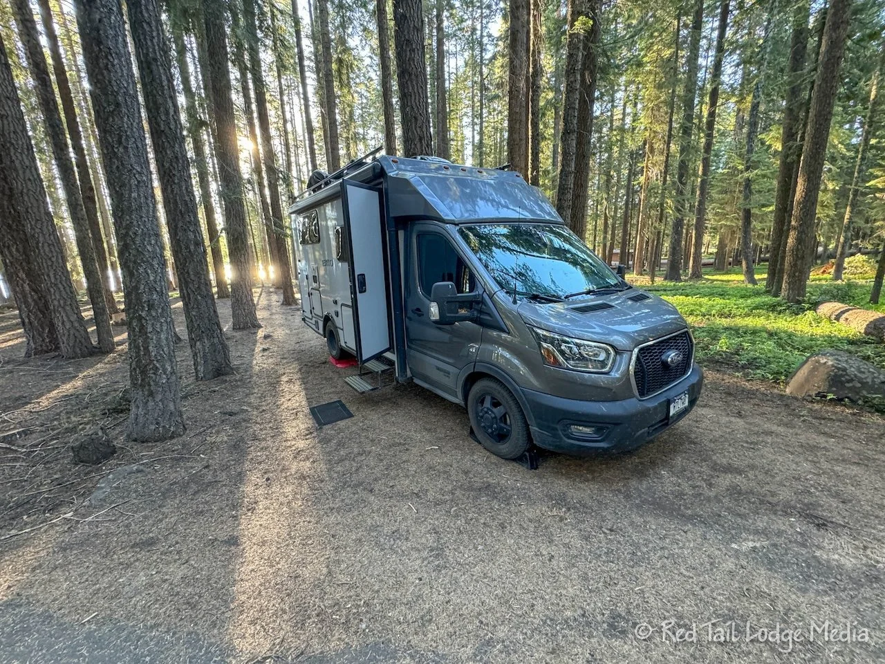 It was another 45 minutes of driving to reach the Aspen Point Campground on Lake of the Woods. Before we set up camp, we stopped at the RV dump to fill up our fresh tank. It cost $12 to dump, but it was free to fill up potable water. Since we already dumped our tanks at Lassen Volcanic National Park before we left, all we needed was fresh water.