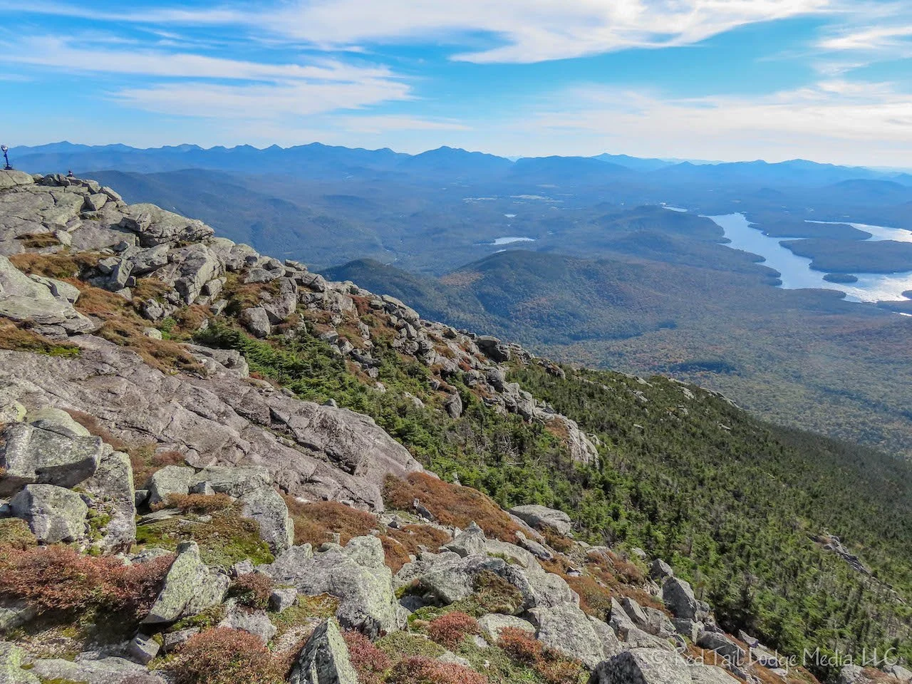 There is only about one spot before leaving the trees where there is any kind of view. That is just fine because you need to keep your eyes on your feet and the trail to decide where to take your next step. The views from the summit make up for the lack of views along the way. It was simply stunning. We think we like the views from Cascade Mountain better than Whiteface Mountain and the top of the ski jump from the day before. And we didn’t have to pay any money to see it. However, the price we paid was our time and our sore muscles. It’s been a while since we’ve gone on a challenging hike and it felt good.