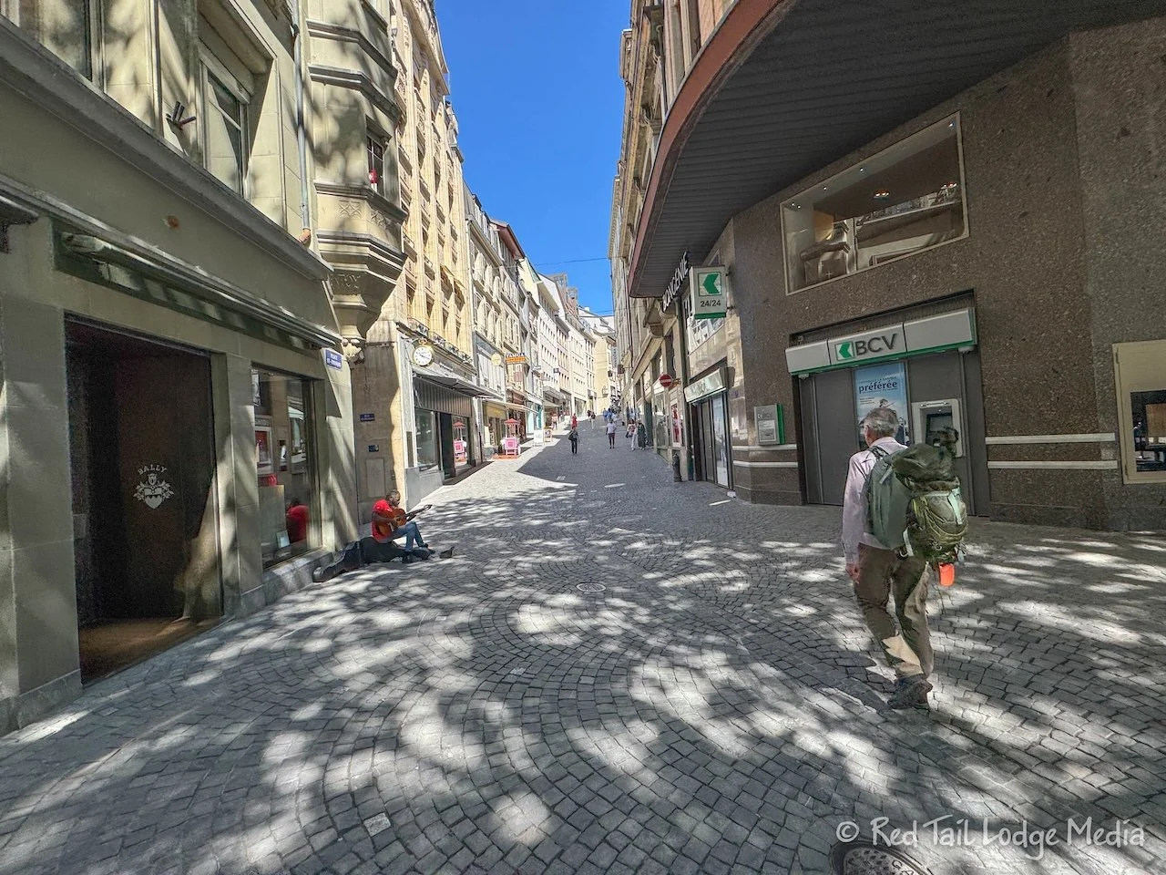 Switzerland has four official languages, French, German, Italian, and Romansch. Lausanne is in the French-speaking area of Switzerland. We walked into Ozizo and tried to order Kebab Durum in French. “Bonjour! Deux Kebab Durum, s’il vous plait (hello! Two Kebab Durum, please)”. So far, so good. Then they started asking us questions that we didn’t understand. So we negotiated what language to speak in. “Parlez vous anglais? (Do you speak English?)” “Non, Deutsch?” (No, German?). “Ja, wir können Deutsch!” (Yes, we can speak German). There were two employees behind the counter. One could speak German and the other could not. So we spent the rest of the time speaking German with one of them. They asked us where we were from, Zürich perhaps? They were surprised when we told them we were Americans.