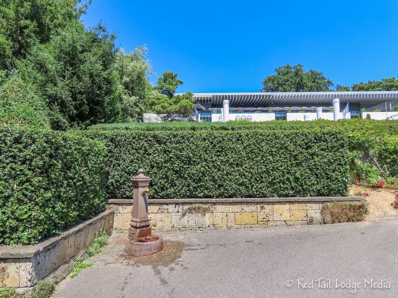 We had saved our plastic bottles from our drinks at lunch, hoping to see a water fill station along the way. By the time we reached the Olympic Museum, we had not yet spotted any. As we were walking up the stairs, Ann’s bottle fell out of her long leg pocket on her hiking pants. So she decided to throw it away. No sooner did she do that, there was a potable water fill station. In fact, there were quite a few scattered around the Olympic Museum gardens. So Keith was able to refill his bottle, but Ann had to buy another drink at the museum. Throughout the rest of the day, we managed to find several water fill stations, which was good since it was such a warm day.