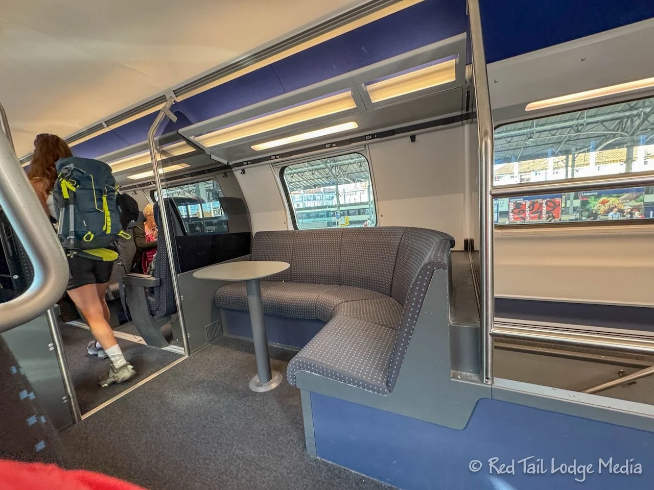 Ann walked up to the restaurant car to buy drinks. She walked through a couple of the first class cars. They looked more comfortable, as the seats had more room and the cars were not as crowded. However, we bought our travel pass for second class only, to save money.