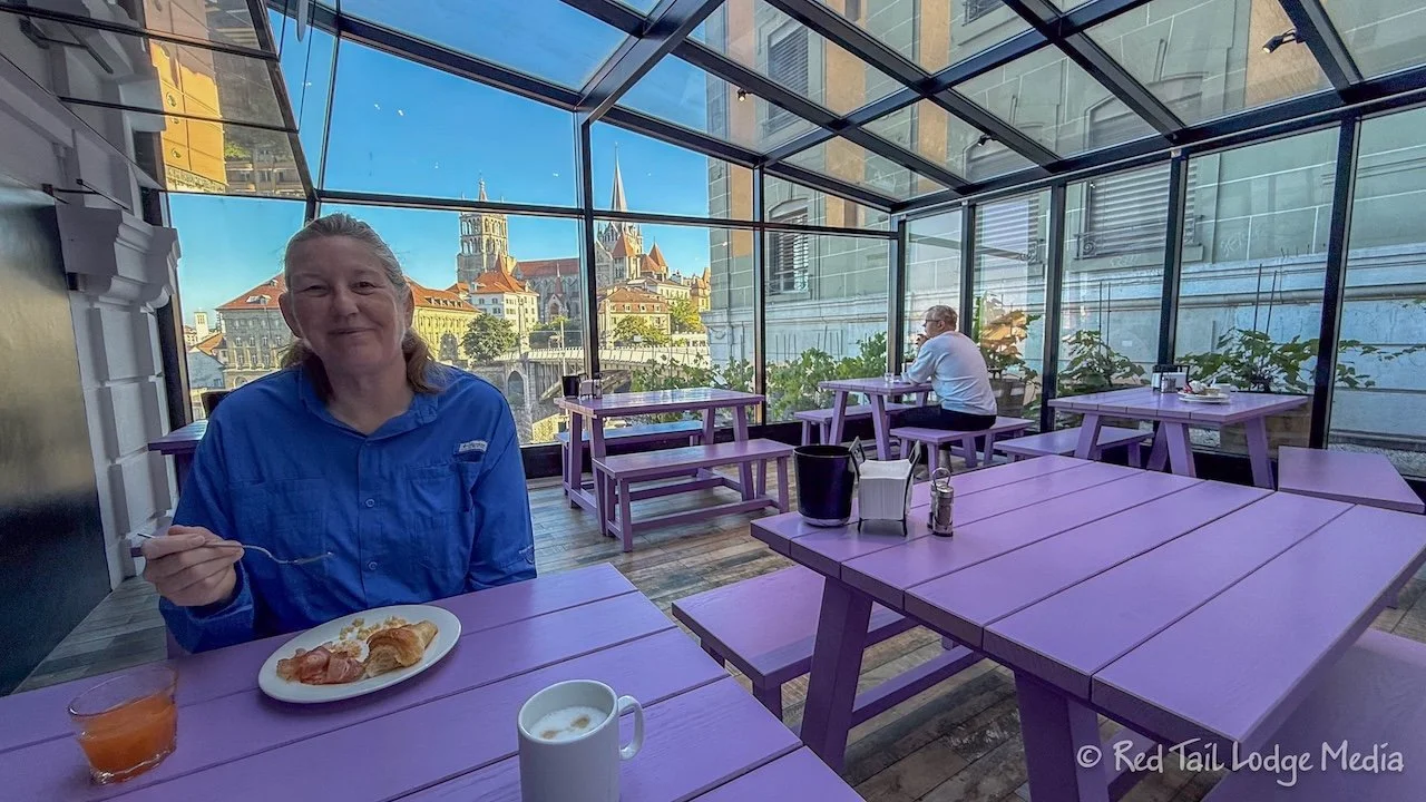 Friday, we wandered the streets of Lausanne. The breakfast room at the hotel was in a glass sun room with views of the cathedral.