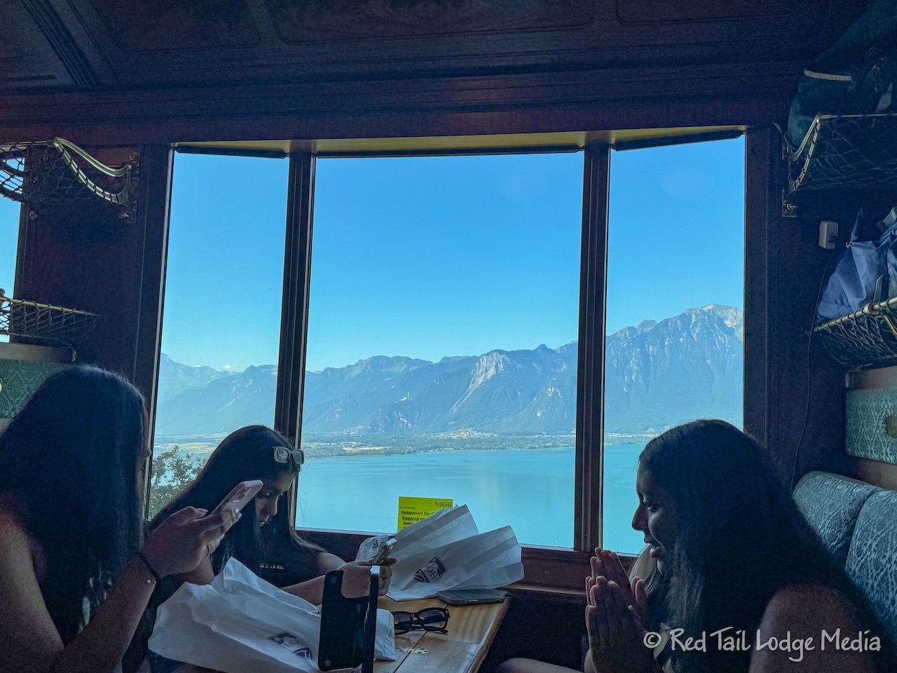 We checked in for our tour on Platform 6 in the Montreux station at 9:15 am. They checked our tickets and gave us lanyards with a tag that listed all of the important meeting times throughout the day. The train left the station promptly at 9:43 am.