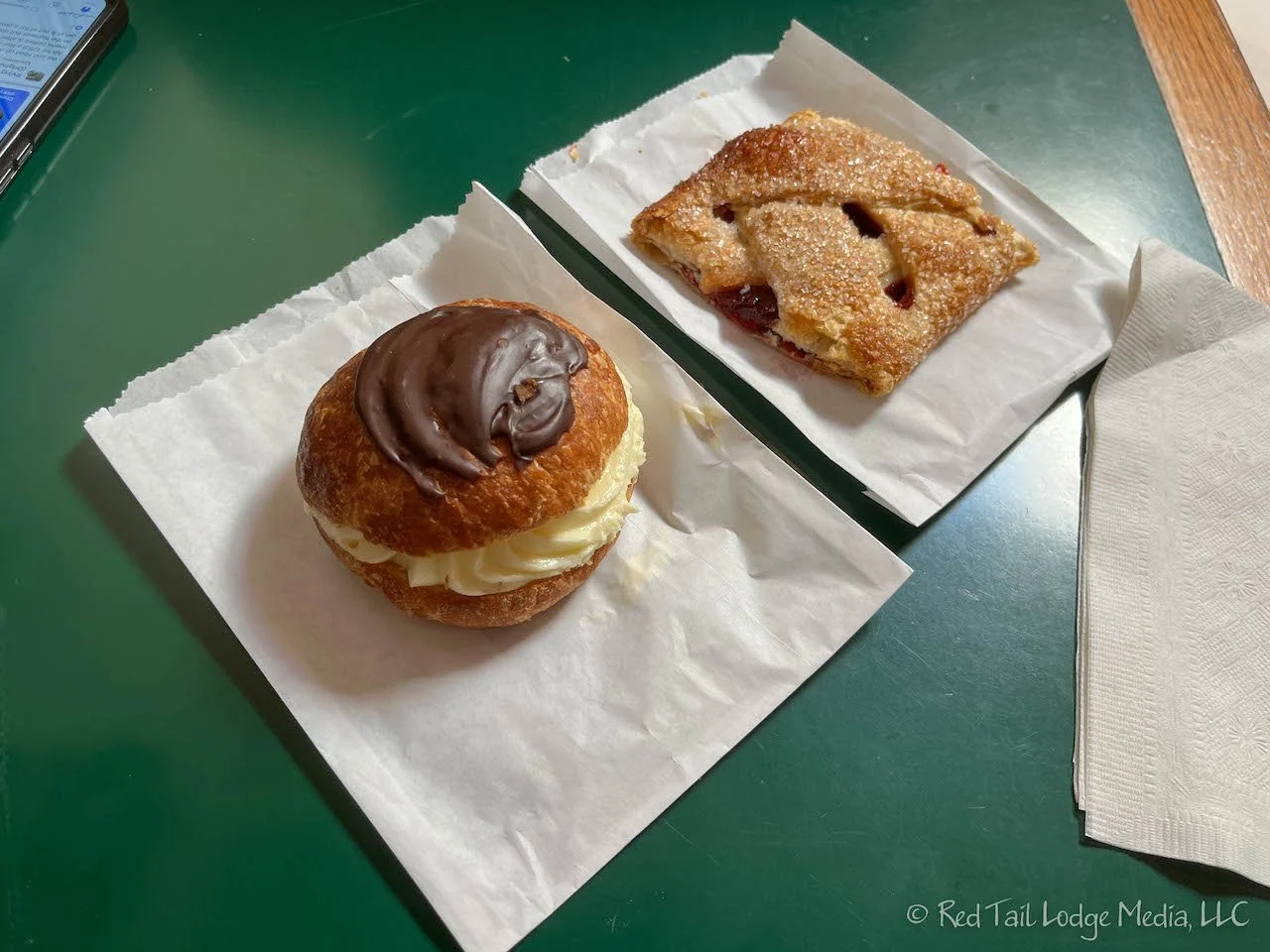 After we circled back to Blackbird Island and back to the Riverwalk, we headed up into town for an afternoon pastry. The Danish Bakery fit the bill. Keith’s cherry strudel was a little different style than what we are accustomed to having in Germany, but still delicious. Ann’s Cream Bollen was also very tasty. We washed our sweets down with cups of chai.