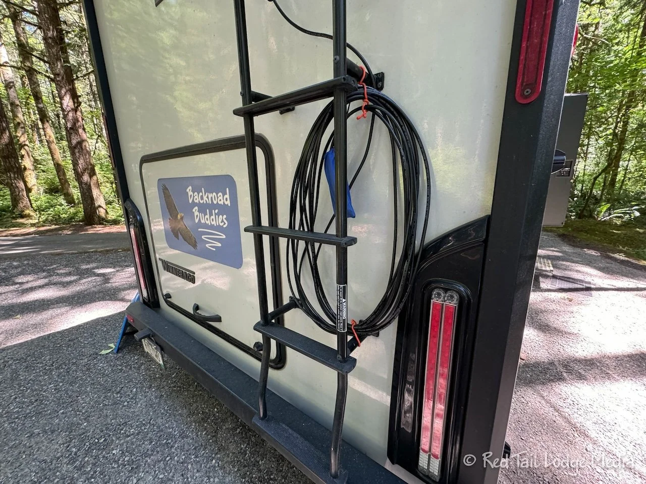 Ann thought we were done with Starlink install stuff, but Keith made a few more changes. First, he attached the 50 foot cable to the ladder on the back of Red Tail, replacing the 10 foot cable he originally attached there. We were struggling with where to store the 50 foot cable, so he decided we could just always have the longer cable attached and just not uncoil it when we need a shorter cable.